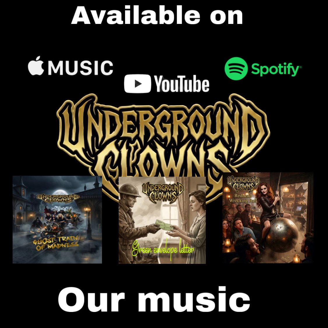 Today, we are Underground Clowns — bringing you that classic big sound, heavy riffs, and theatrical madness, carrying the torch for the music we fell in love with all those years ago. 🤡🚂🔥